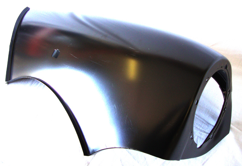 Genuine Heritage LH front wing fitted from November 1985 to 2000 with side repeater and ariel hole, This also has the cutout to allow for the levelling motor on later models, Genuine NON Ariel hole wing is ASB360010.
