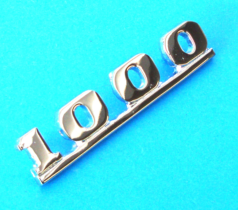 Chrome "1000" badge for the boot lid of the Mk2 Austin and Morris saloons including 998 Cooper from 1967 to 1969. This fits on the lower RH side. The plastic sleeve clips are BDA500.