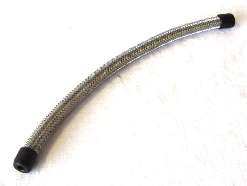 Original early style stainless steel 12 inch long braided rubber petrol pipe 1/4 inch bore.
