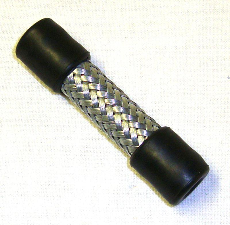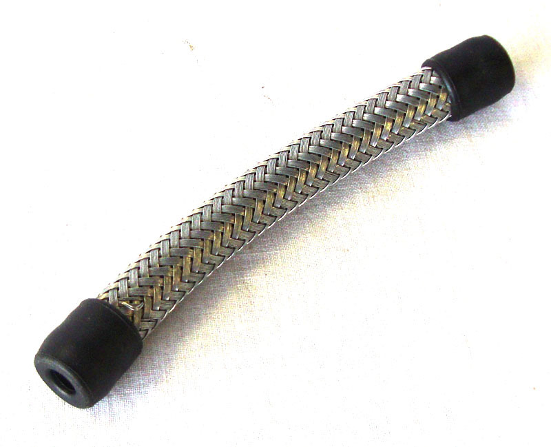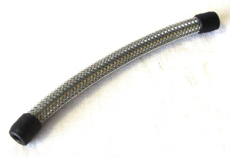 Original early style stainless steel 5 inch long braided rubber petrol pipe 1/4 inch bore.