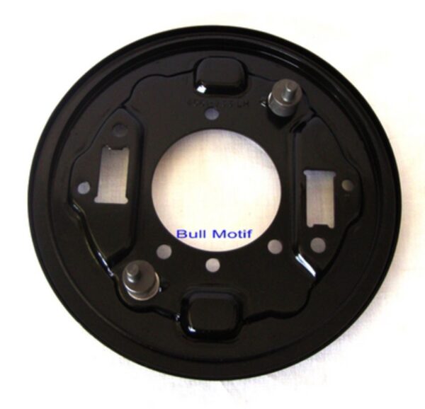 The LH front brake backplate for all models with twin leading shoe drum brakes from 1964 to 1984. This is the type for two cylinders and two adjusters per wheel.
