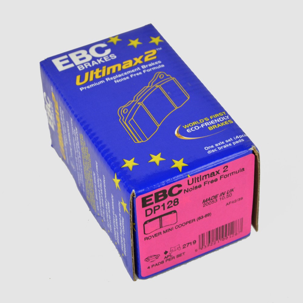 EBC Ultimax 2 “Black Stuff” brake pad set for all standard 998cc Cooper 1963 – 1969 fitted with 7″ discs