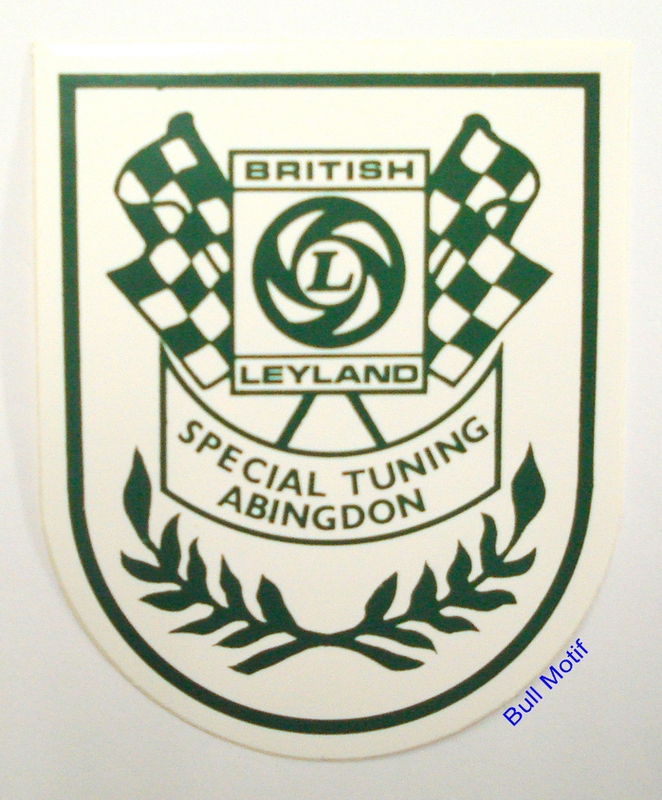 The later green Special Tuning shield sticker with the flags and the square British Leyland emblem as used by Abingdon in the 1970s.