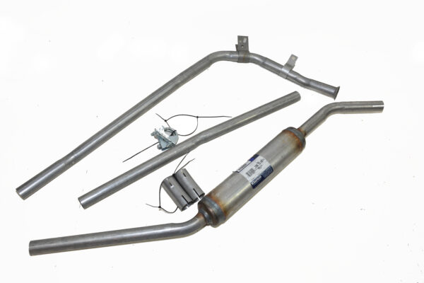 3 piece single box exhaust system for 850 and 1000 saloons from 1964 to 1973. The fitting kit is GEX9551. This system can be used on earlier models with a floor starter button but will need modifying to clear the switch.