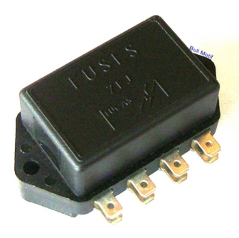 Genuine late Lucas type fuse box which holds four glass fuses. This was fitted on the bulkhead of models from 1976 to 1994.
