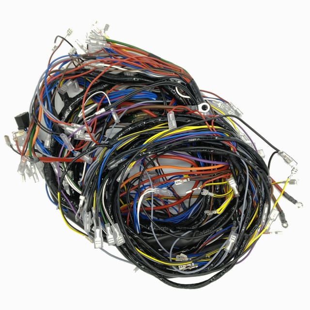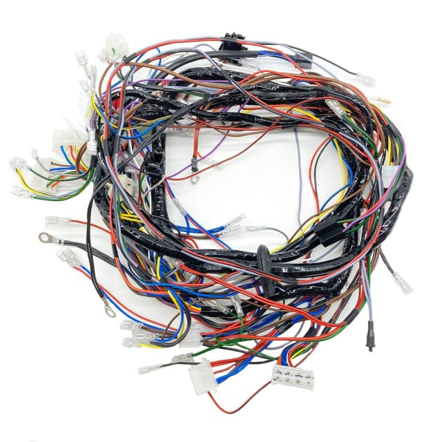 The main front and rear wiring looms for the Innocenti Cooper 1300 LHD model from 1973 to 1975, PVC covered.