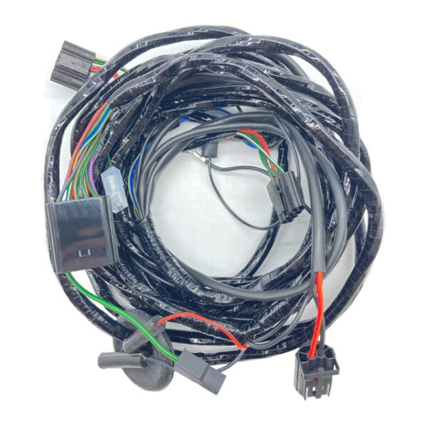 The rear wiring harness for UK saloon models from 1992 onwards. This has a PVC covering and is for VIN numbers 057168 on (YMD10745). This has the 13-way econoseal plug at the connection point and is for carburetter models only as it does not have the facility for a pump in the fuel tank.